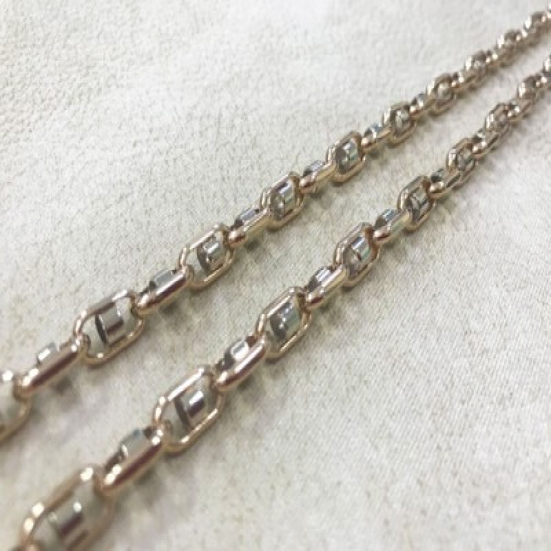 Полновесная якорная цепь со вставками из красного и белого золота 585 пробы 60см