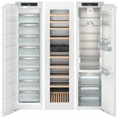 Комбинация Side-by-Side (SIFNe 5178 + EWTgb 3583 + IRBd 5150)Особенности:NoFrostФункция защиты от детейСветодиодное освещение морозильного отделенияСветодиодное освещение зоны свежести BioFreshВинные шкафы серии VinidorФильтр из активированного угляCleaningModeEnergySaverХранение в условиях минимальной вибрацииSuperFrostПревосходная влажностьБлокировка экранаИзолирующая дверь со стеклопакетомPartyModeнормальный режим.Сигнал об отключении питанияHolidayModeBottleTimerАварийный сигнал открытой двериСигнал при повышении температурыМаслёнкаФильтр FreshAir с активированным углём.Поднос для замораживанияАккумуляторы холодаVarioSpaceКонцепция Side-by-SideОбщие данные:Размеры:высота: 181,6 смширина: 171,3 см (55,9 + 59,5 + 55,9)глубина: 57,2 смОбщий объем/ Полезный объем:Холодильника (л): 877/771Холодильной камеры (вкл. зону свежести) (л): 321/291Морозильной камеры (л): 249/209Винной камеры (л): 307/271Тип управления: электронныйКласс энергопотребления: A++/A/A++Климатический класс: SN-T (от +10°С до +43°С) / SN (от +10°С до +32°С) / SN-T (от +10°С до +43°С)Годовое потребление энергии: 553 (271+162+120) кВтч/годЦвет: белыйХолодильное отделение:8 полок из закаленного стекла (из них 7 регулируемых по высоте и 1 разделяемая)VarioSafeКоличество полок на двери для хранения бутылок: 2Количество полок на двери для хранения консервов: 2Контейнеры VarioBox: 2, выдвижныеОтделения в двери: Полка для бутылок и консервовРегулируемые по высоте полки на внутренней стороне двери: Ступенчатая регулировкаМатериал полок на двери: Стекло с планкой из нержавеющей сталиЗона свежести BioFresh с 3 контейнерами на телескопических направляющих с системой SoftTelescopicСветодиодное освещение зоны свежестиГибкое применение в качестве Fruit-&Vegetable-Safe или Meat-&Diary-Safe: 2Автоматическое размораживаниеДвухсторонняя световая панельРегулируемый диапазон температур: от +3 °C до +9 °CКлиматические зоны: DrySafe / Fruit & Vegetable-SafeЦиркуляционное охлаждениеФильтр FreshAir: В клапанеМеханизмы выдвижения ящиков: Полностью выдвигаемые телескопические направляющие с доводчиком и системой амортизации закрытияЛоток для яиц: ВариабельныйМасленкаСухая задняя панельМатериал сухой задней стены: Легированная сталь с SmartSteelВинное отделение:Максимальное количество бутылок Бордо 0,75 л: 83Количество полок: 10, из них 8 выдвигающийся на телескопических шинах и 1 демонстрационнаяМатериал полок для хранения вина: деревоСветодиодное освещение с плавной регулировкой яркости, продолжительно включаемоеЦиркуляционное охлаждениеФильтр из активированного угляМорозильное отделение:Система No Frost (Frost Free, Ноу Фрост)Время хранения при отключении питания: 14 чМощность замораживания в сутки: 18 кгДиапазон температур: от -15 °C до -28 °CСветодиодное освещениеКоличество контейнеров: 8FrostSafe: Полностью закрытые выдвижные ящики с прозрачной передней стенкойМеханизмы выдвижения выдвижных ящиков: Частично выдвигаемые телескопические направляющиеСистема VarioSpaceЛоток для льда с крышкойЧисло аккумуляторов холода: 2Поднос для замораживанияМатериал регулируемых полок: стеклоДополнительная информация:2,4“ TFT-дисплей цветной, сенсорный и свайповый экранЖК-дисплей с цифровой индикацией температуры (винный шкаф)Индикаторы температурыSuperFrost: Настраивается на устройствеСигнал открытой двери морозильного отделения: Настраивается на устройствеBottleTimer: Настраивается через приложениеБлокировка экрана: Настраивается на устройствеSuperCool: Настраивается на устройс